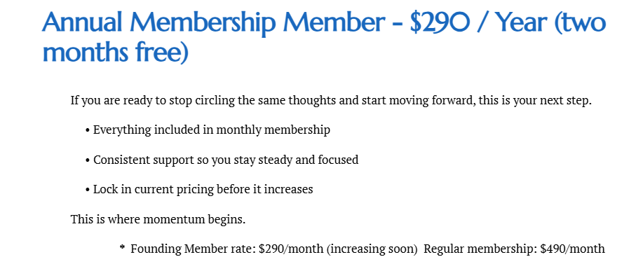 * Founding Member rate: $290/month (increasing soon) Regular membership: $490/month