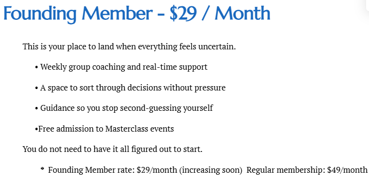 * Founding Member rate: $29/month (increasing soon) - Regular membership: $49/month
