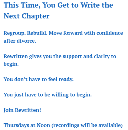 Rewritten is for women who are facing divorce or already divorced and ready to build what comes next.